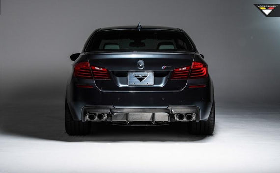 The Vorsteiner sport Aero Rear Diffuser is designed to attach onto the factory M5 bumper for a sporty and elegant styling. The Rear Diffuser sports full light weight carbon fiber which allows air to pass freely off the rear of the vehicle while maintaining its athletic appearance.