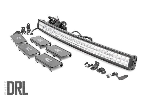 COMMAND THE DARK: Stay out later on the trails with Rough Country's powerful 40-inch Dual Row Curved LED Light Bar with Cool White DRL. With a jaw-dropping 21,600 Lumens and 240 Watt output, this CREE LED light is a sight to behold.Rough Country's DRL Light Bars feature a strip of LEDs designed to illuminate similar to the daytime running light option of modern headlights. This strip of LED backlighting gives your vehicle increased visiblity and an interesting look. Rough Country's LED Light Bars include a durable die-cast aluminum, IP67 waterproof housing for unsurpassed protection against the elements. Each LED also features an IP68 waterproof wiring harness with a three-position toggle switch and in-line fuse. TiFor peace of mind, each LED also includes Rough Country's 3-year Warranty.