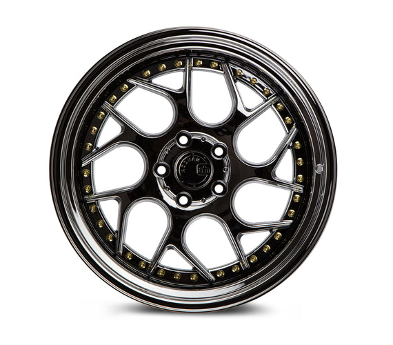 Aodhan DS01 18x8.5 5x114.3 et+ 35 73.1 Black Vacuum W/ Gold Rivets