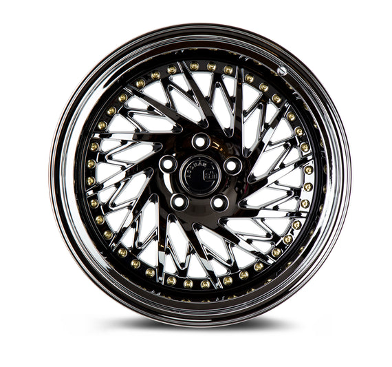 Aodhan DS03 18x10.5 (Passenger Side) 5x114.3 et+ 15 73.1 Black Vacuum w/ Gold Rivets