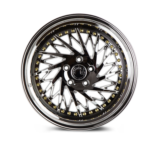 Aodhan DS03 18x10.5 (Driver Side) 5x114.3 et+ 22 73.1 Vacuum Chrome w/Gold Rivets